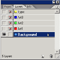 6. На палитре Layers (Слои) щелкните на пустом прямоугольнике, расположенном слева от имени слоя Background, чтобы заблокировать слой. Оставьте слой Background видимым, чтобы была возможность наблюдать за результатами изменения параметров прозрачности вышележащих слоев.